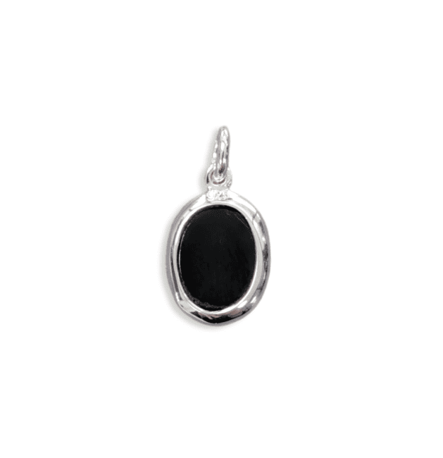 925 Silver Oval Pendant Black Obsidian A 13mm