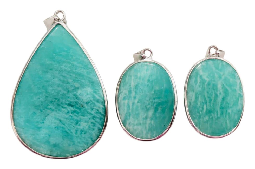 925 Sterling Silver Amazonite AA+ Pendant, 3 pieces, 14.68g