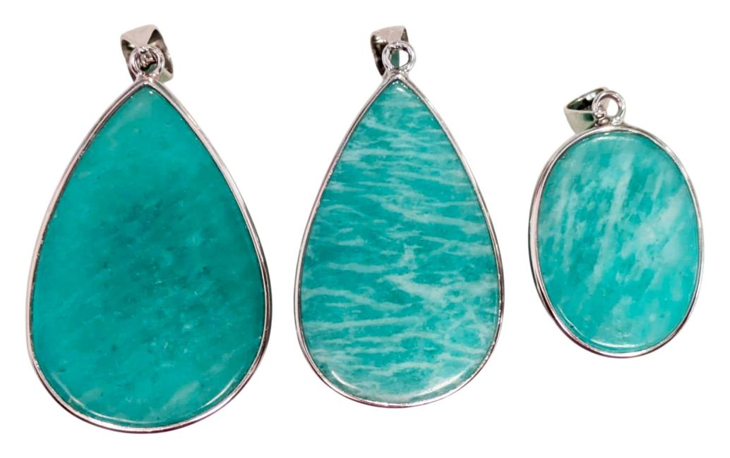 925 Sterling Silver Amazonite AA+ Pendant, 3 pieces, 15.64g