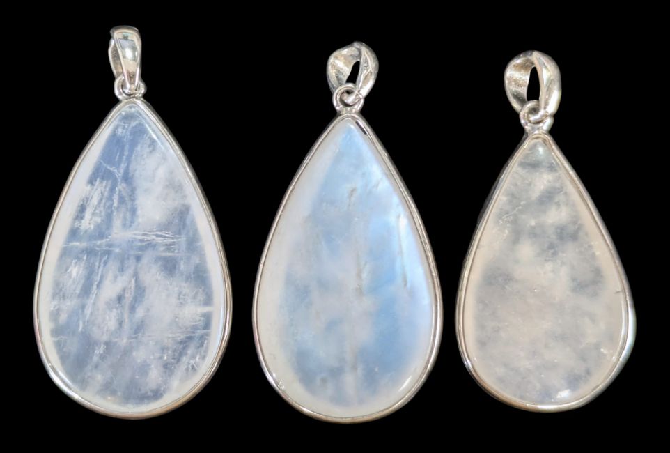 925 Sterling Silver Pendant with AAA White Moonstone, 3 Pieces, 10.48g