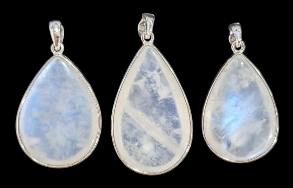 925 Sterling Silver Pendant with AAA White Moonstone, 3 Pieces, 10.52g