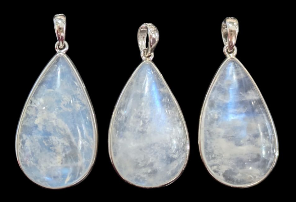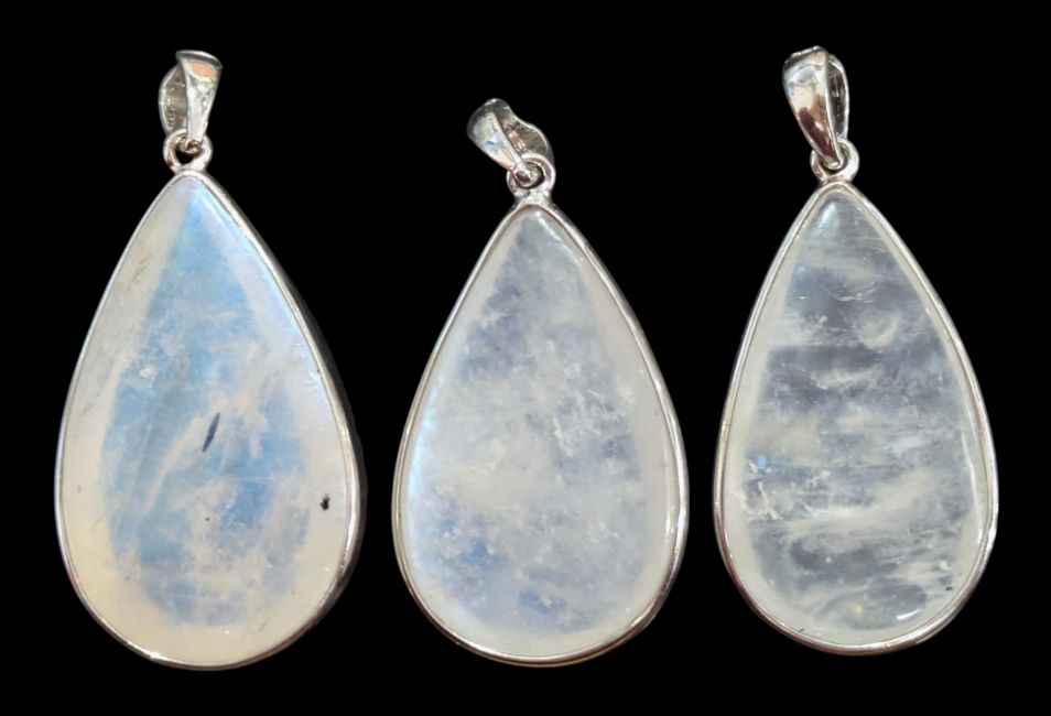 925 Sterling Silver Pendant with AAA White Moonstone, 3 Pieces, 10.6g