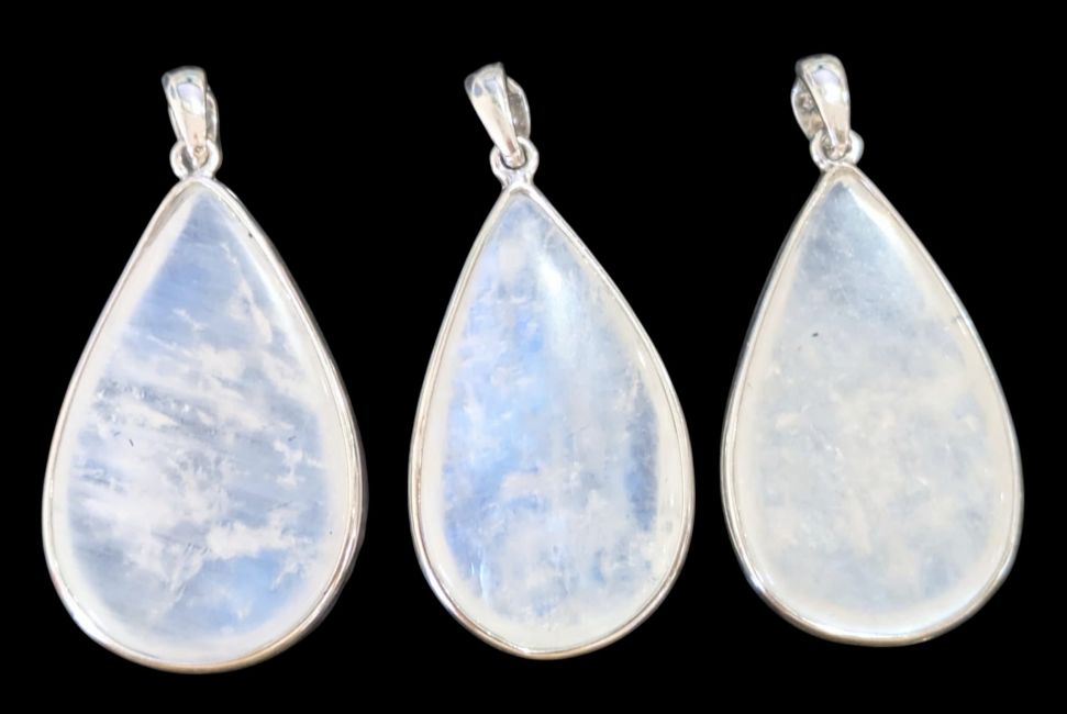 925 Sterling Silver Pendant with AAA White Moonstone, 3 Pieces, 11.07g