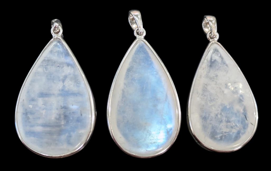 925 Sterling Silver Pendant with AAA White Moonstone, 3 Pieces, 11.25g