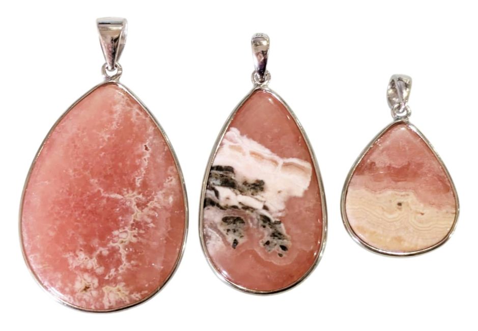 925 Sterling Silver Rhodochrosite Pendant, Argentine AA+, 3 pieces, 13.52g