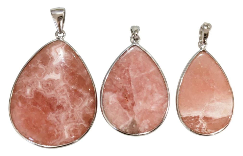 925 Sterling Silver Rhodochrosite Pendant, Argentine AA+, 3 pieces, 14.53g
