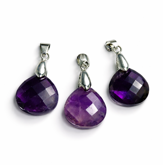 Amethyst Faceted Flat Drop Pendant – Set of 3