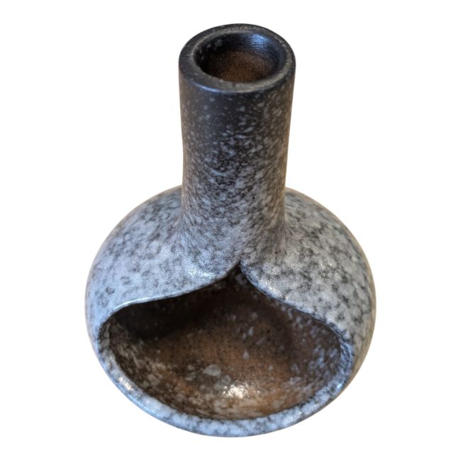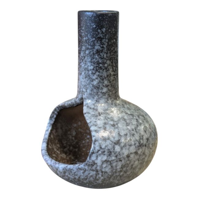 Its black finish, revealing white nuances achieved through a reactive ceramic firing process, makes each piece unique. Both functional and decorative, this burner integrates seamlessly into meditation spaces, wellness areas, or concept stores.