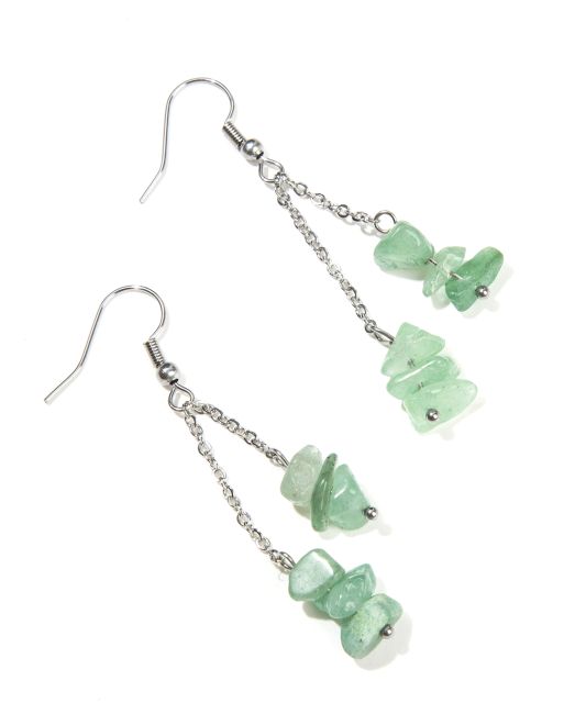 Gold Earrings in Stainless Steel Raw Rose Quartz A 5cm