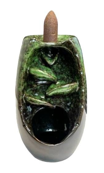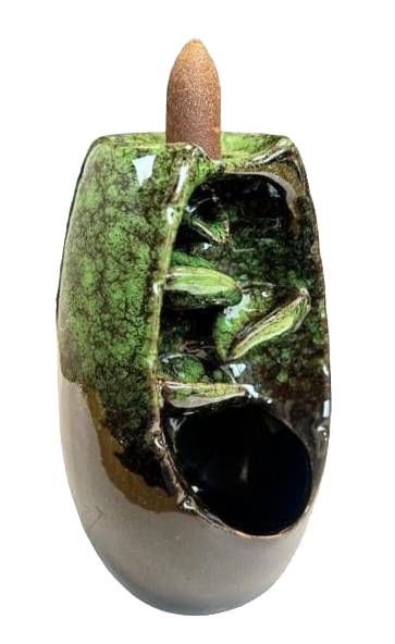 Green Ceramic Backflow Incense Holder Cascade of Leaves 13cm