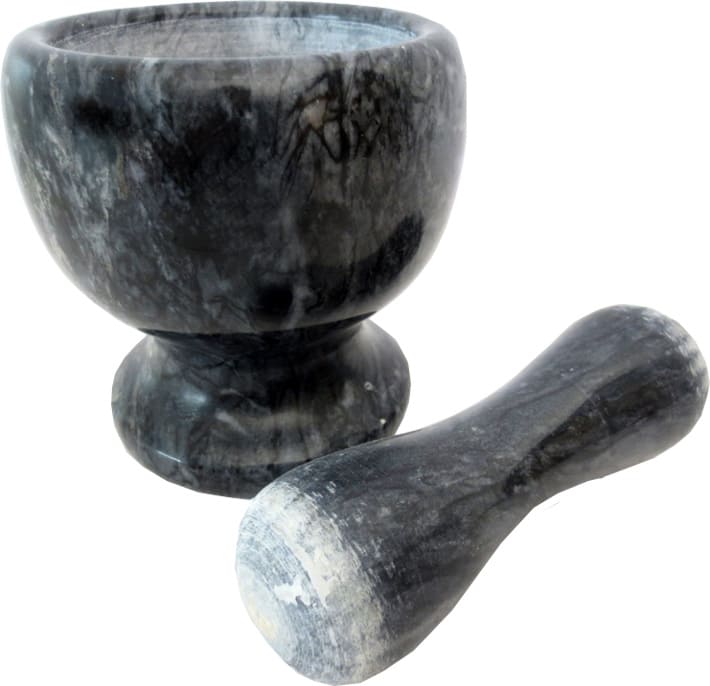People cook with fresh spices in a proffesional kitchen. They use Mortars to get the best taste from spices. You will get a better taste and smell by stamping the spices.- Material: Marmer- For stamping spices and Herbs