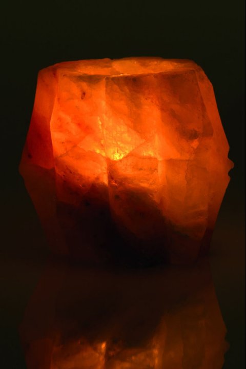 Hand-carved from natural salt crystal , this candle holder emits a soft, amber glow that creates a relaxing atmosphere. Each piece is unique in its color and veining. Compatible with tealight candles Ø38–40 mm (not included). Perfect for the living room, bedroom, or a wellness area.