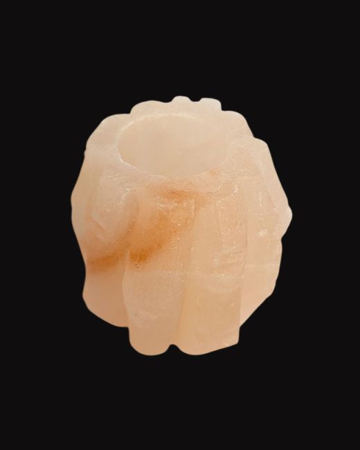 Hand-carved from natural salt crystal , this candle holder emits a soft, amber glow that creates a relaxing atmosphere. Each piece is unique in its color and veining. Compatible with tealight candles Ø38–40 mm (not included). Perfect for the living room, bedroom, or a wellness area.