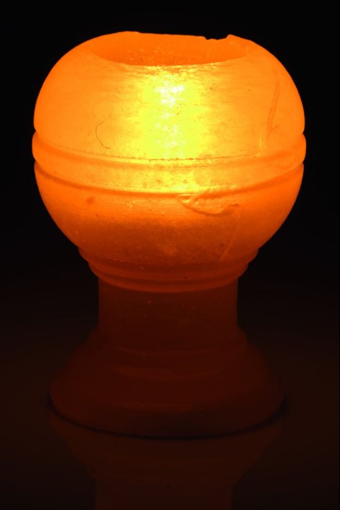 Hand-carved from natural salt crystal , this candle holder emits a soft, amber glow that creates a relaxing atmosphere. Each piece is unique in its color and veining. Compatible with tealight candles Ø38–40 mm (not included). Perfect for the living room, bedroom, or a wellness area.