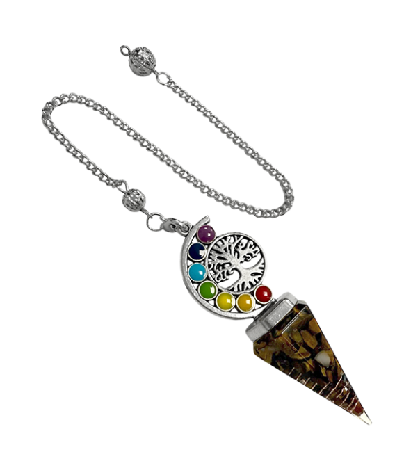 Orgonite Pendulum Tiger Eye Tree of Life 7 Chakras 6 sides