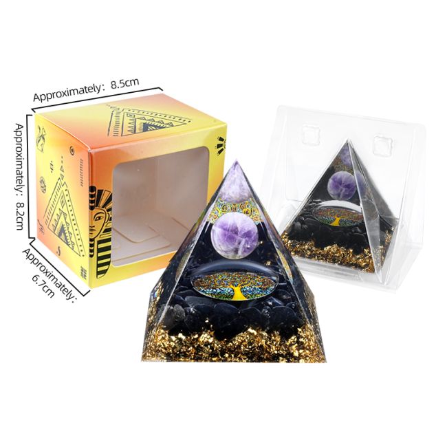 Orgonite Pyramid Amethyst & Black Obsidian Tree of Life