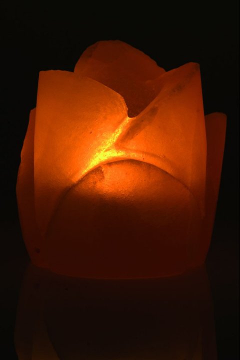 Hand-carved from natural salt crystal , this candle holder emits a soft, amber glow that creates a relaxing atmosphere. Each piece is unique in its color and veining. Compatible with tealight candles Ø38–40 mm (not included). Perfect for the living room, bedroom, or a wellness area.