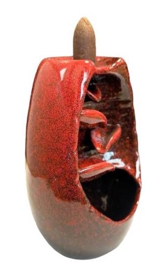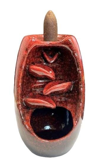 Red Ceramic Backflow Incense Holder Cascade of Leaves 13cm