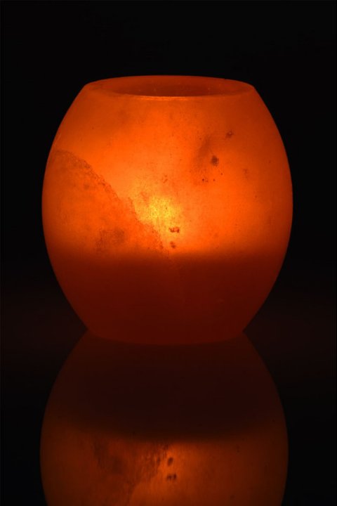 Hand-carved from natural salt crystal , this candle holder emits a soft, amber glow that creates a relaxing atmosphere. Each piece is unique in its color and veining. Compatible with tealight candles Ø38–40 mm (not included). Perfect for the living room, bedroom, or a wellness area.