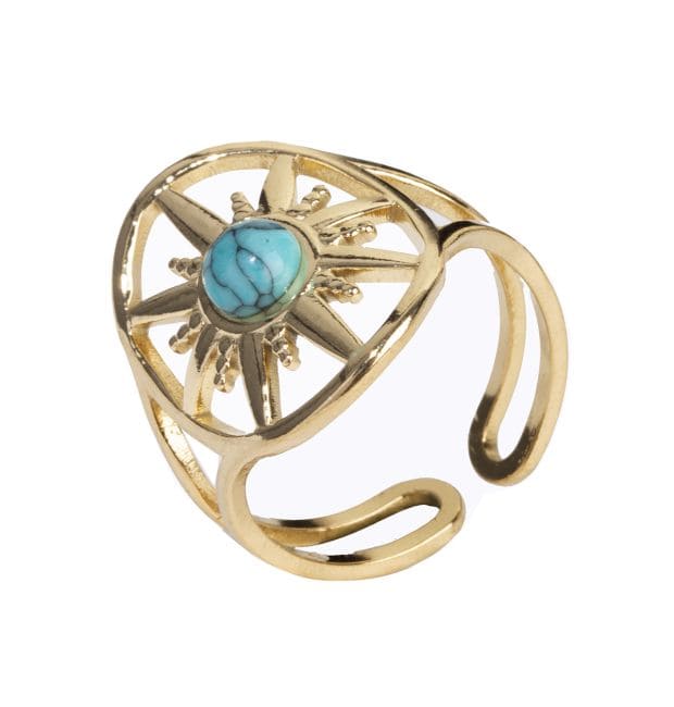 Sun Turquenite Adjustable Golden Stainless Steel Ring A