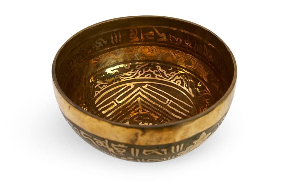 Tibetan singing bowl with carvings - Om - 14cm