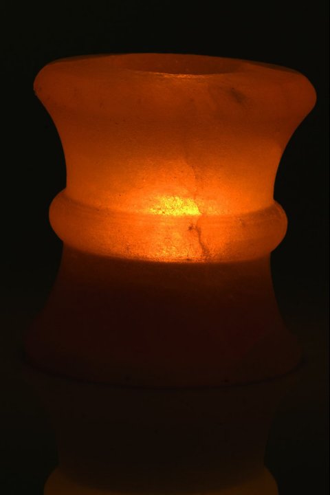 Hand-carved from natural salt crystal , this candle holder emits a soft, amber glow that creates a relaxing atmosphere. Each piece is unique in its color and veining. Compatible with tealight candles Ø38–40 mm (not included). Perfect for the living room, bedroom, or a wellness area.